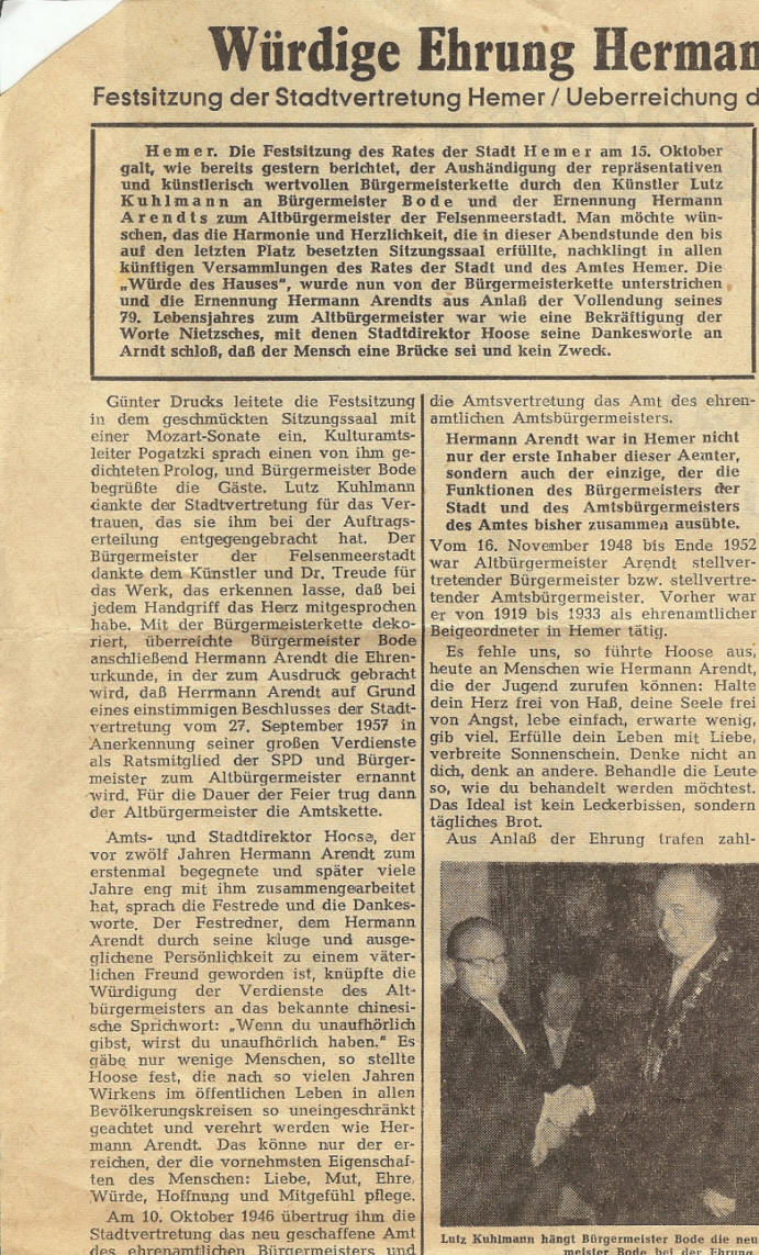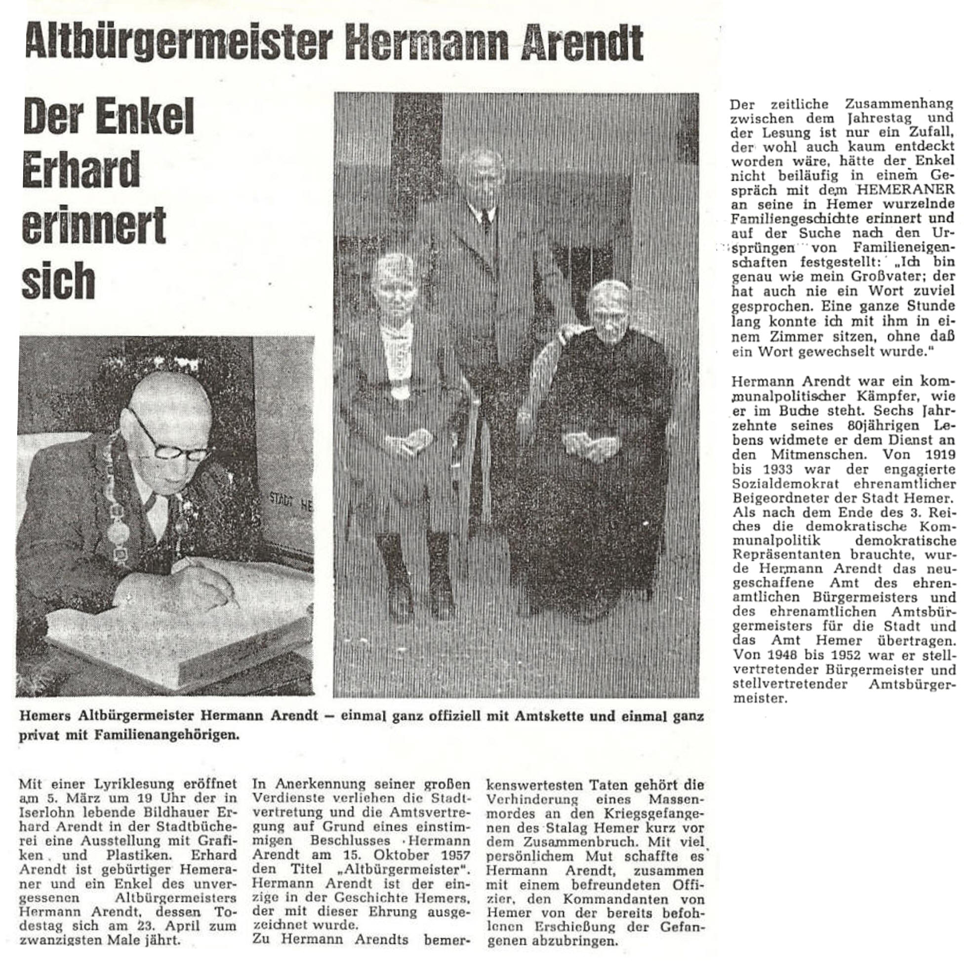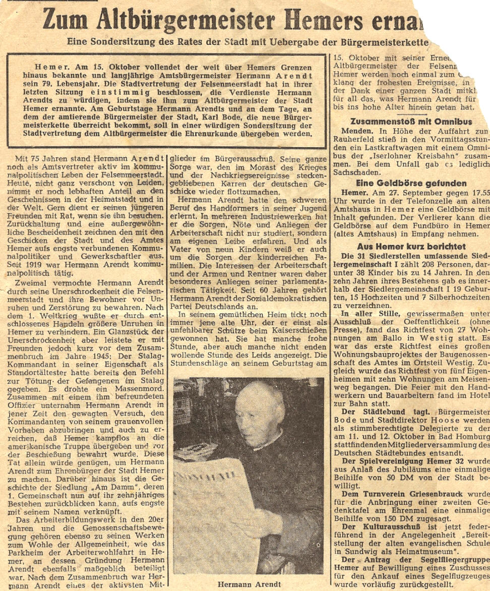 April 1959 - Todestag von Hermann Arendt