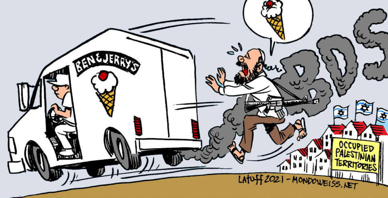 Die ikonenhafte, berühmt wachsame Speiseeis-Produzentin „Ben & Jerry’s“ kündete am Montag an, dass sie ihr Produkt nicht mehr im ‚Occupied Palestinian Territory‘ (= opt) verkaufen werde. Die Firma erklärte: „Wir glauben, es ist, mit unseren Werten unvereinbar, dass Ben & Jerry’s Speiseeis in dem besetzten palästinensischen Gebiet (opt) verkauft wird.“ Jedoch fügten sie hinzu: „Obwohl Ben & Jerry’s in opt nicht länger verkauft, wollen wir in Israel aufgrund einer anderen Vereinbarung bleiben.“