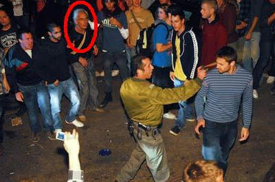 mitten in einem Aufruhr, und ich sah Polizisten, die